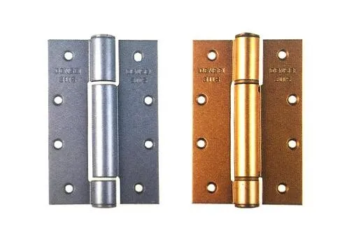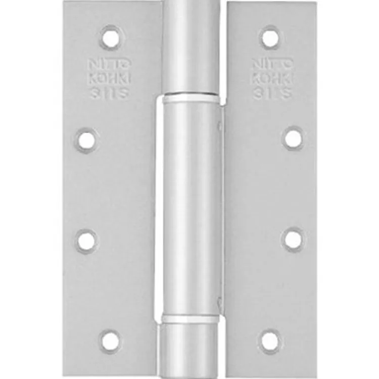 上下兩片鉸鏈為一組, 上部為回歸啟動之彈簧鉸鏈, 下部為控制回歸速度之油壓鉸鏈