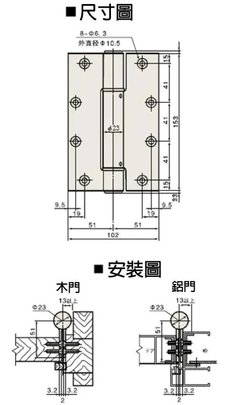 適用於木門、輕型鋁全金門、輕型鋼製門