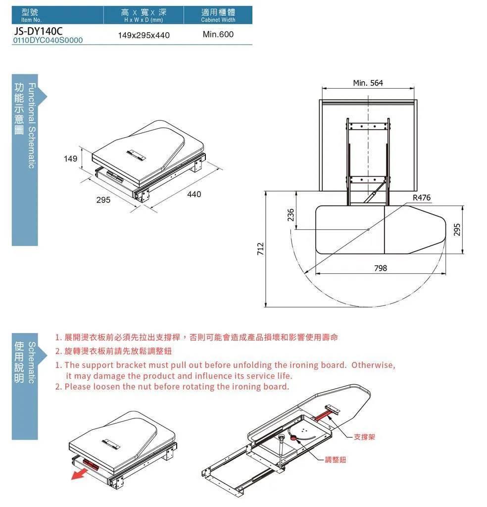 緩衝旋轉燙衣板/鋼珠滑軌
