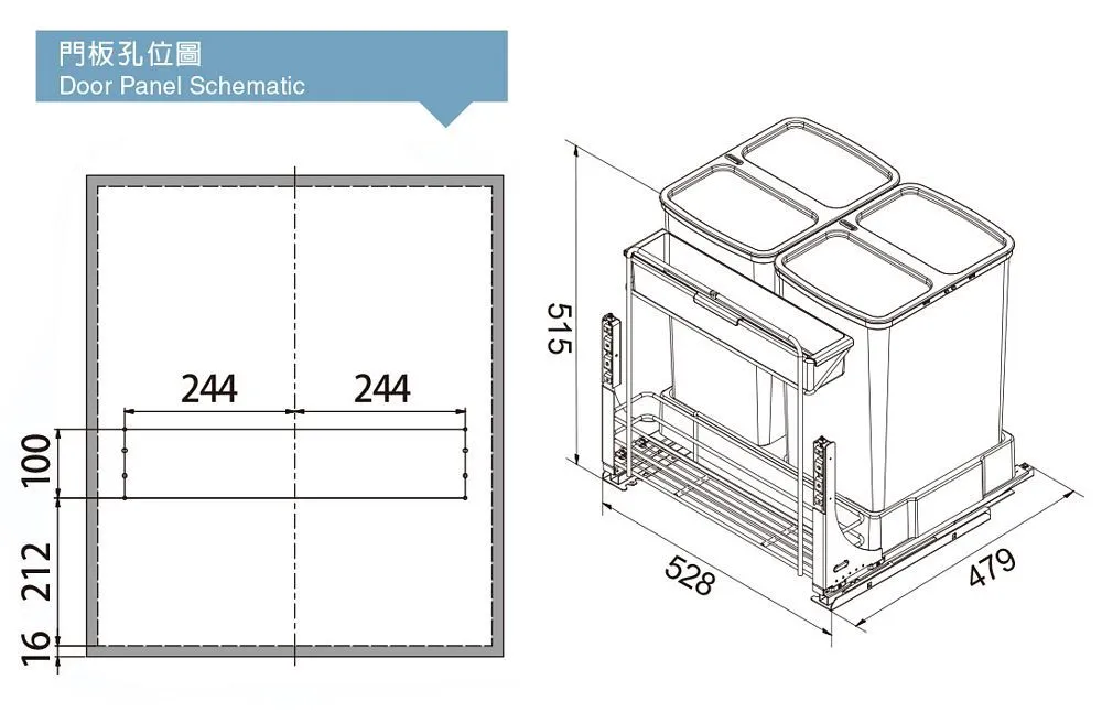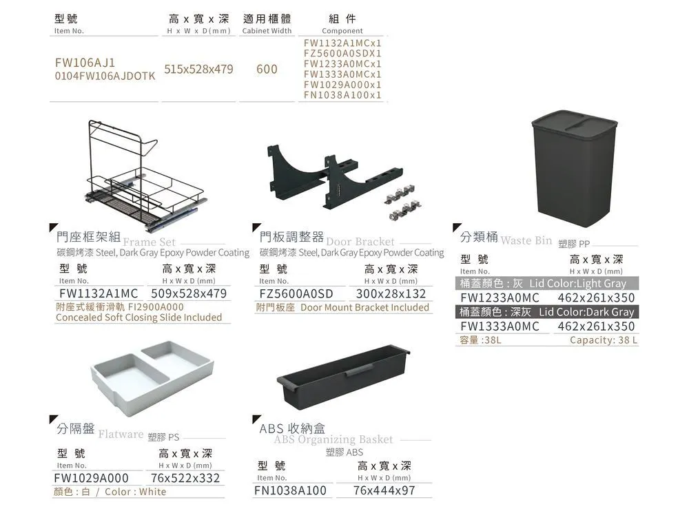 隱藏式垃圾桶設計可實現廚房整體乾淨美觀,可拿取的活動式設計,容易整理及清潔!