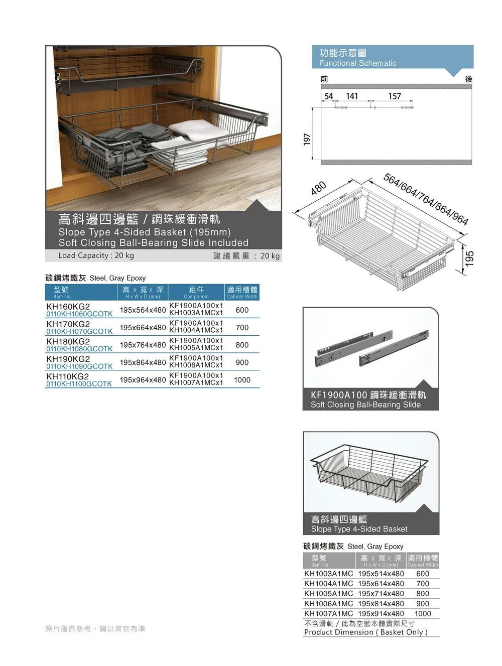產品說明 鋼珠緩衝滑軌 碳鋼烤鐵灰 高低兩款 產品特色 堅固耐用衣櫥專用拉籃 具緩衝回歸功能,回推輕聲不碰撞 為滿足需求開發高低兩款可選擇 ※高款為JS-KH160高斜邊四邊籃,低款為JS-KA140斜邊四邊籃