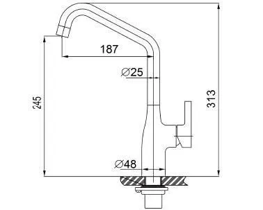產品說明:1.出水管能360度旋轉。2.基座直徑: 48 mm。3.安裝孔直徑: 35 mm。4.底部固定調整量: 58 mm。5.不鏽鋼接水管: 60 cm。6.附0101K0100000STX 角閥 x2。 應用範例