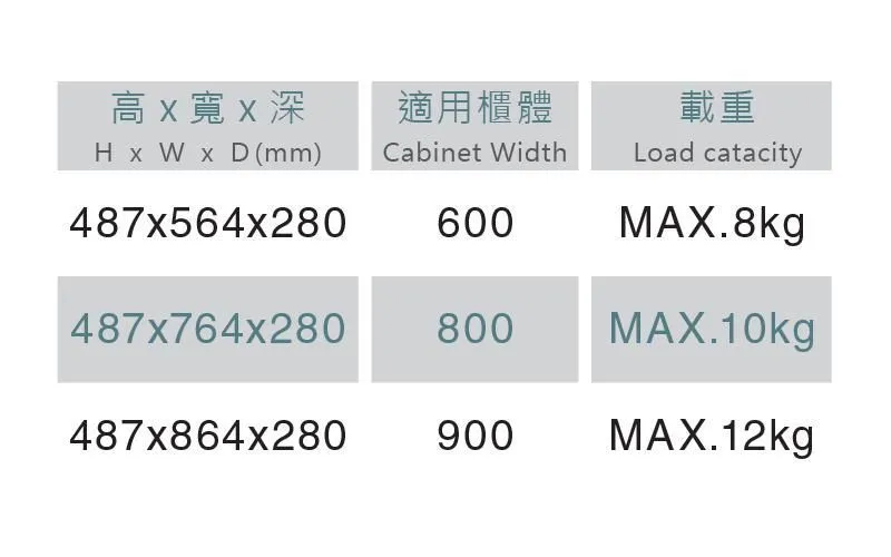 安裝實內櫃體深度至280mm