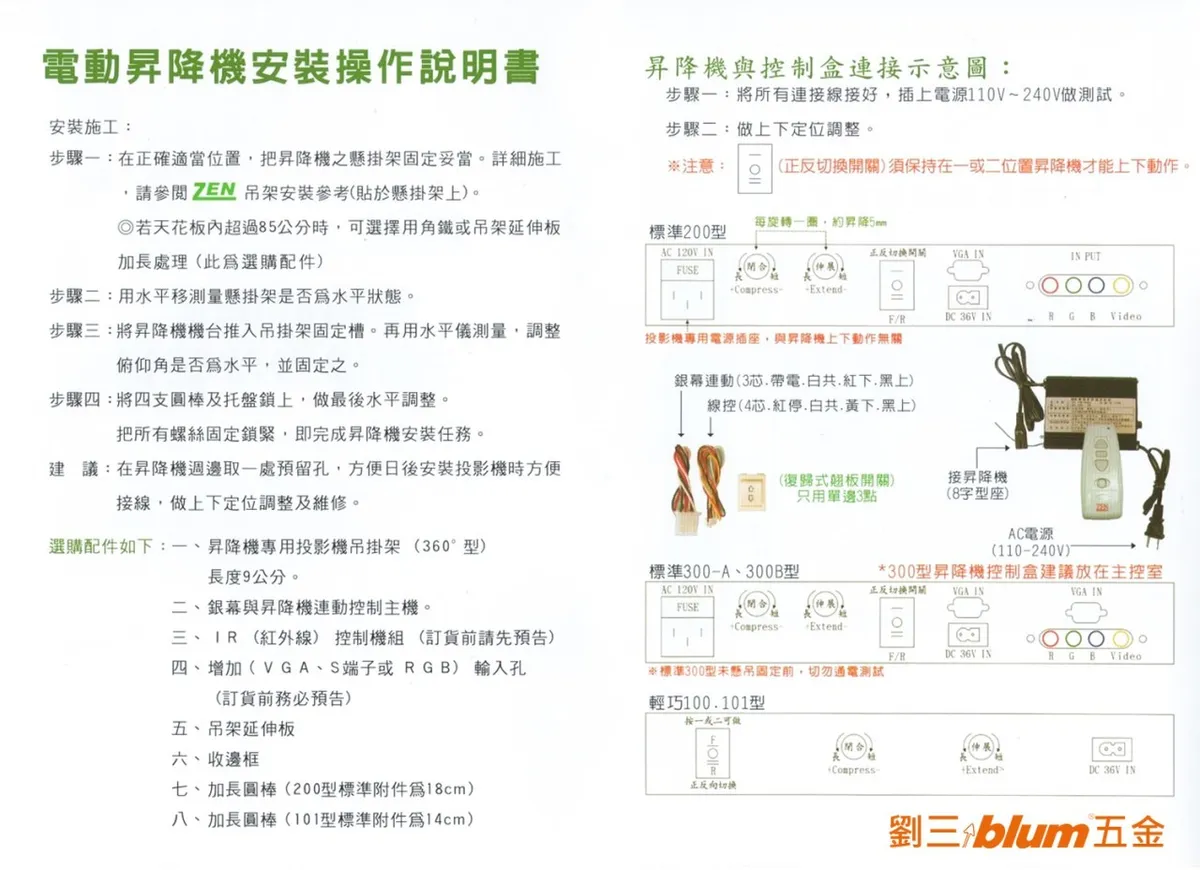 控制方式:標準三鍵式無線遙控或搭配中央控制系統