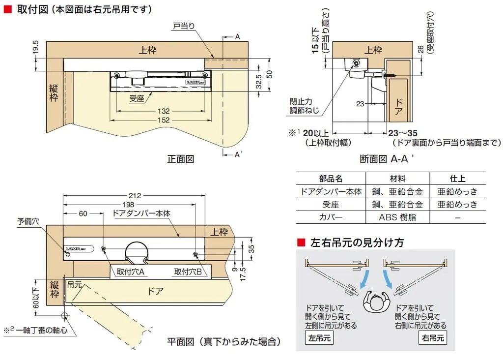 適用:門片重量15~40kg / 門片寬度為90公分以內 / 門厚3.3公分以上。