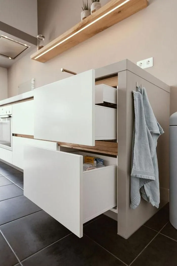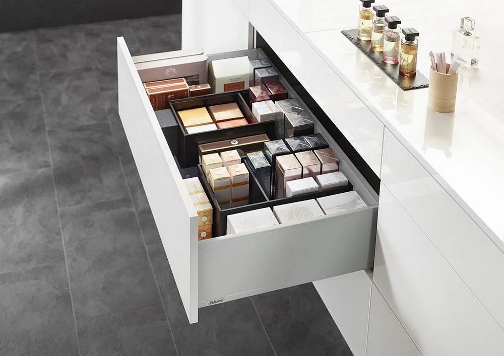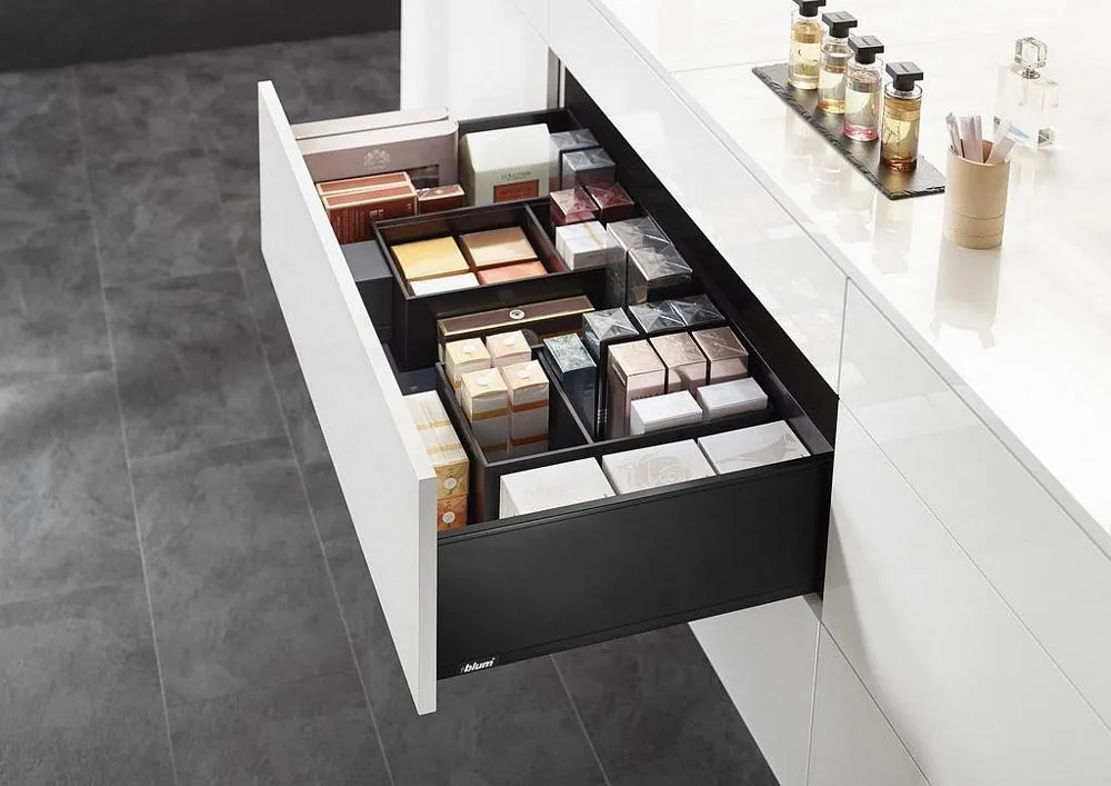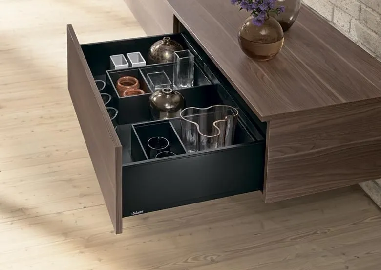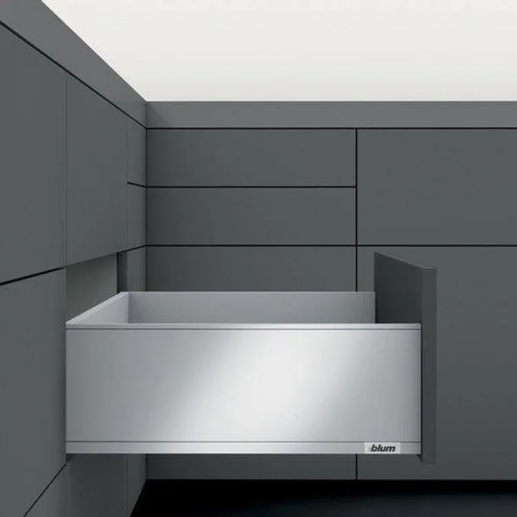 纖細的直線型設計、高質量的動感使這款優雅的抽屜系列尤為出眾。簡約的設計早已榮獲多項國際大獎。 LEGRABOX 超薄麗拉金屬抽屜就像住宅主題一樣具有多面性,適用於所有居家空間和應用範圍。全新的LEGRABOX 麗拉滑軌系統,因其為全拉式抽屜且負載能力強而備受客戶青睞。由於下垂度低,可在與距離地板在近的位置安裝LEGRABOX麗拉超薄金屬抽屜系列滑軌。有40kg和 70kg 的動態載荷,即使對於較寬而且負有重物的抽屜,滑軌也能輕盈滑動。