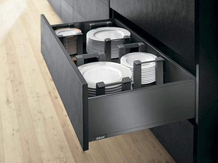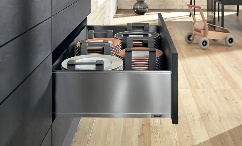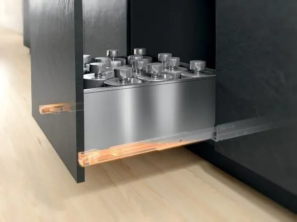 作為一種設計元素,高面板越來越重要。為了迎合這種設計趨勢,LEGRABOX 超薄麗拉金屬抽屜系列,新的面板固定件,確保抽屜開合過程中的穩定性。