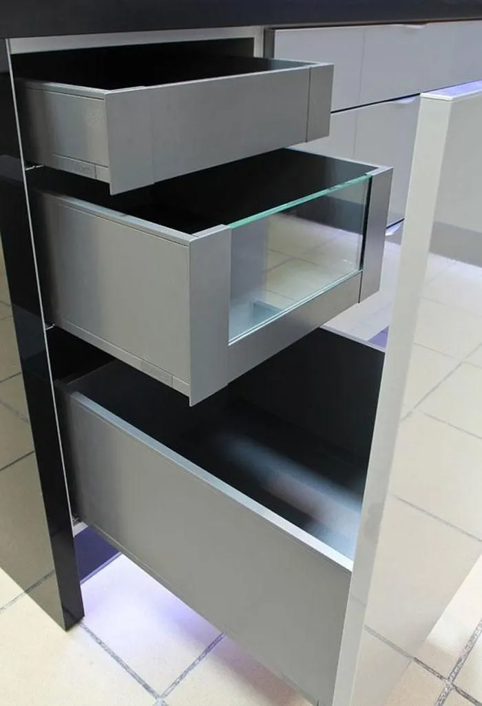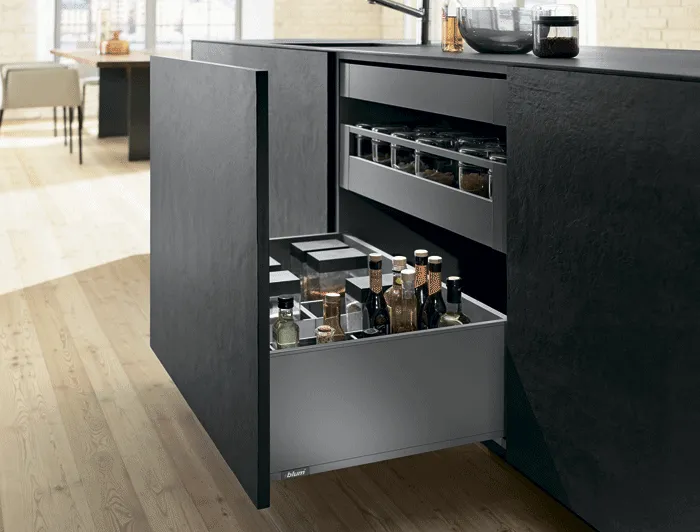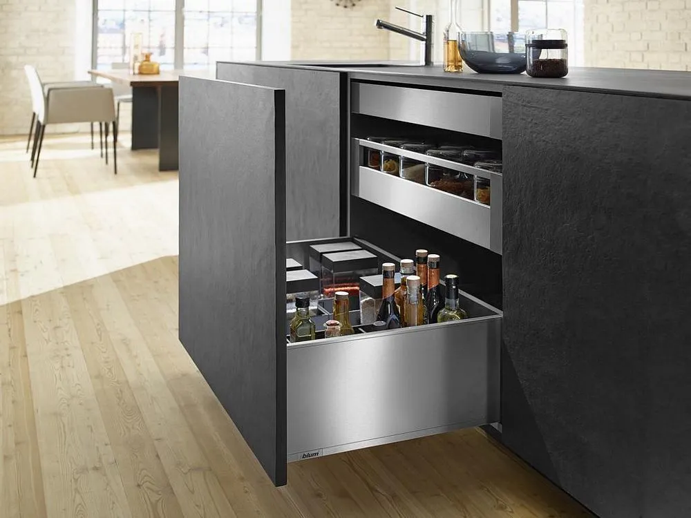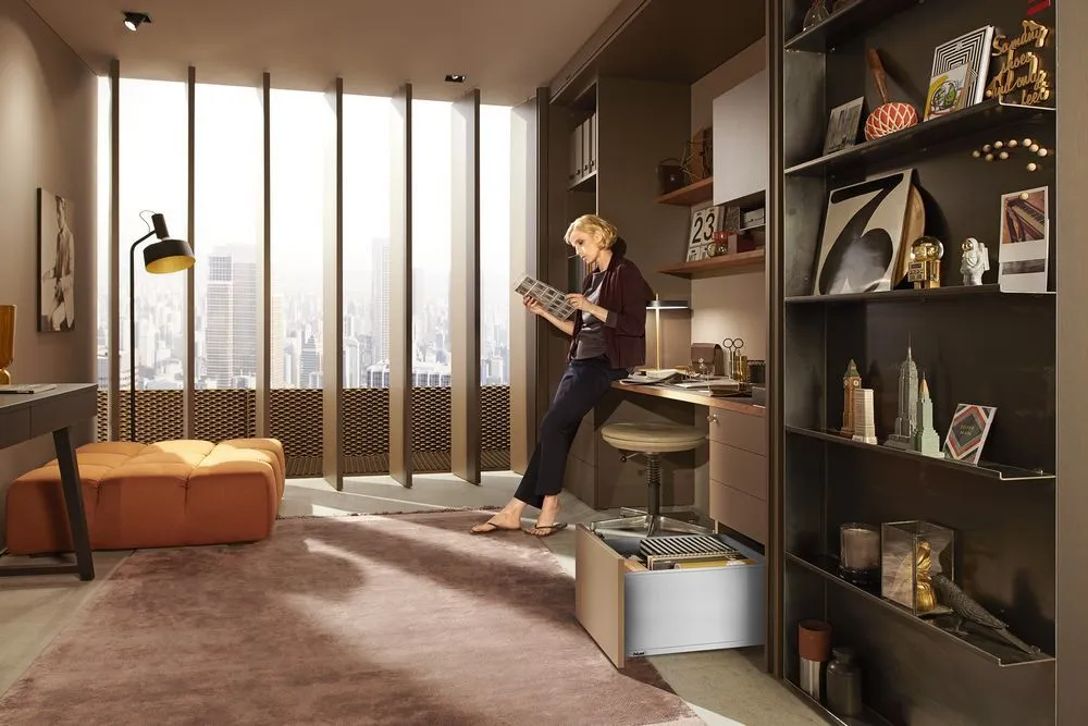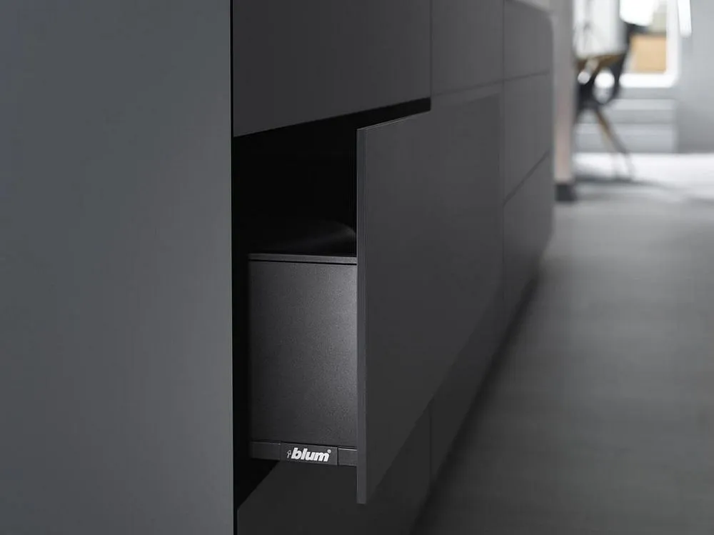 作為一種設計元素,高面板越來越重要。為了迎合這種設計趨勢,LEGRABOX 超薄麗拉金屬抽屜系列,新的面板固定件,確保抽屜開合過程中的穩定性。