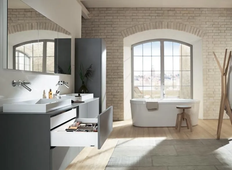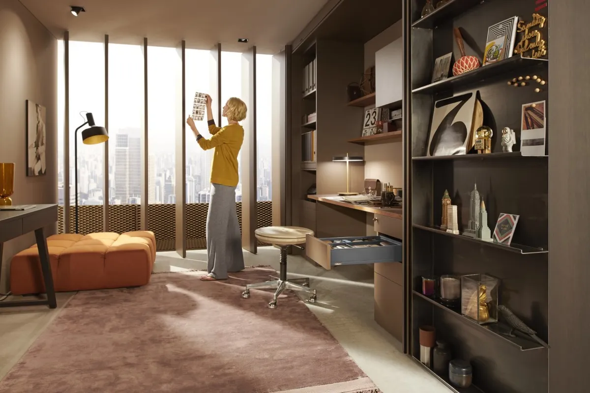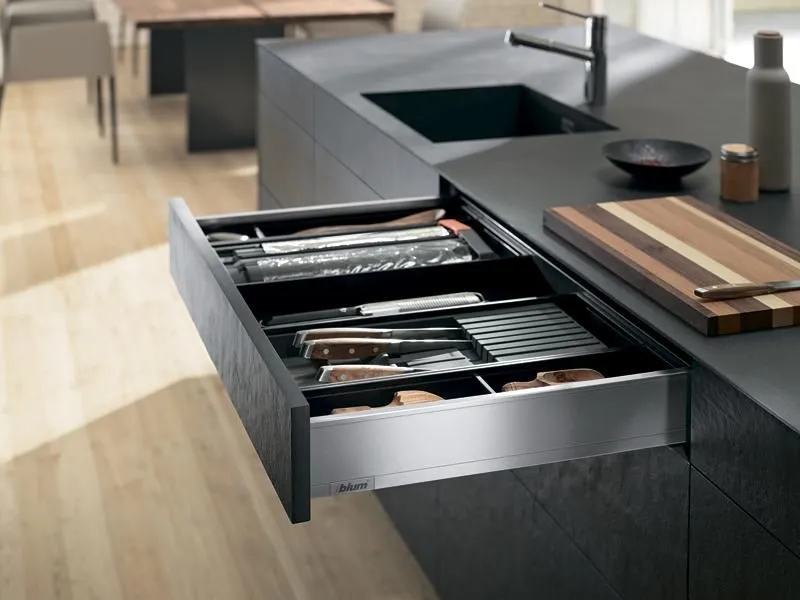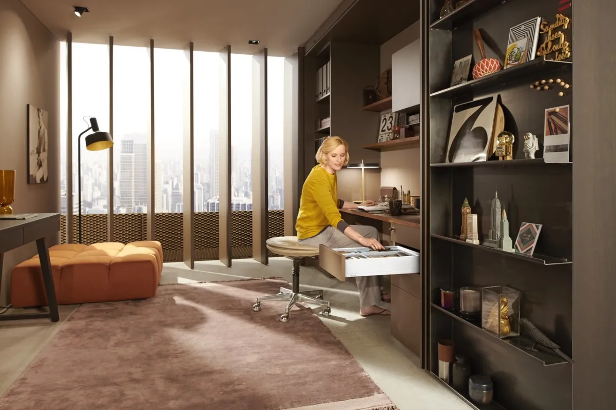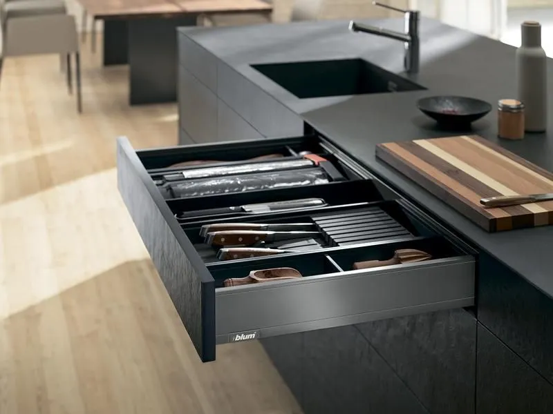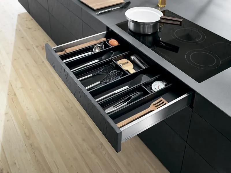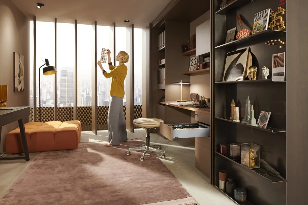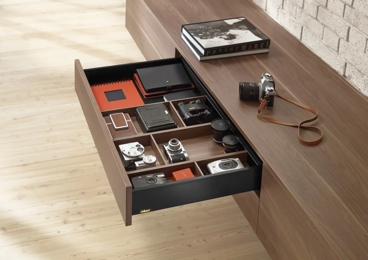 作為一種設計元素,高面板越來越重要。為了迎合這種設計趨勢,LEGRABOX 超薄麗拉金屬抽屜系列,新的面板固定件,確保抽屜開合過程中的穩定性。