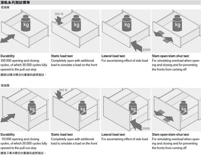 5. 通過10萬次以上之重覆開關測試(SGSS),耐用度遠勝於國內外其他品牌滑軌。