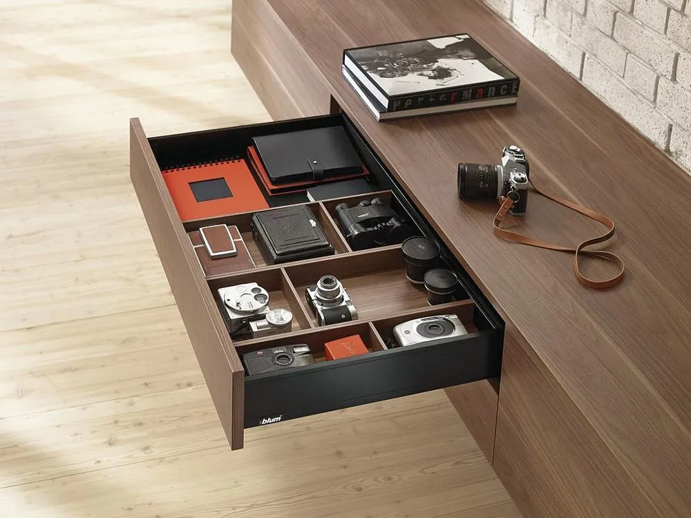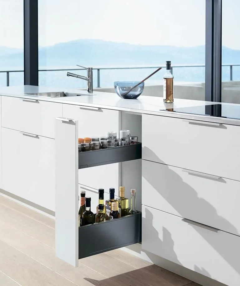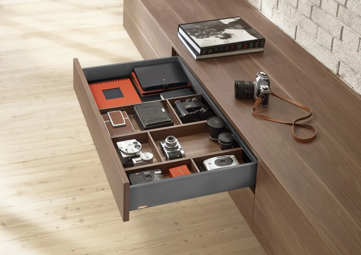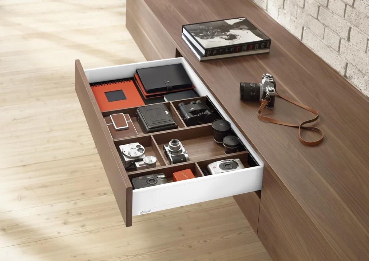 纖細的直線型設計、高質量的動感使這款優雅的抽屜系列尤為出眾。簡約的設計早已榮獲多項國際大獎。 LEGRABOX 超薄麗拉金屬抽屜就像住宅主題一樣具有多面性,適用於所有居家空間和應用範圍。全新的LEGRABOX 麗拉滑軌系統,因其為全拉式抽屜且負載能力強而備受客戶青睞。由於下垂度低,可在與距離地板在近的位置安裝LEGRABOX麗拉超薄金屬抽屜系列滑軌。有40kg和 70kg 的動態載荷,即使對於較寬而且負有重物的抽屜,滑軌也能輕盈滑動。