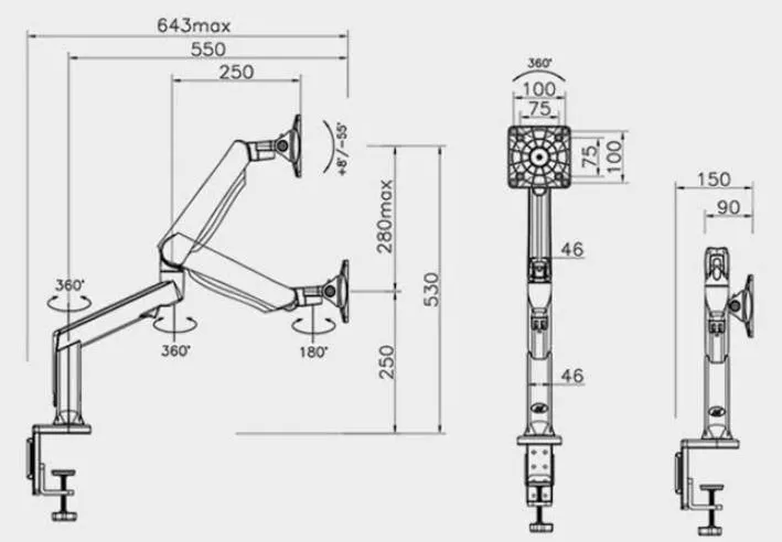 符合VESA規格7.5 x 7.5 cm - 10×10cm。