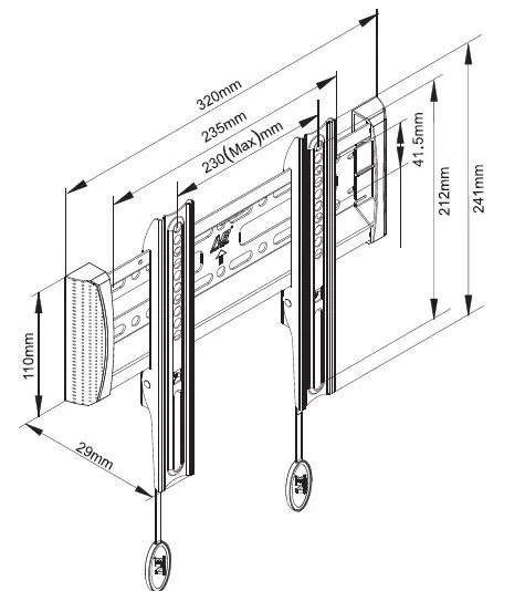 電視與牆面距離 2.9 cm,不可調俯仰角度。
