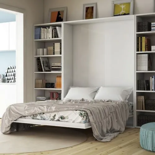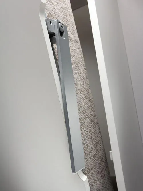義大利原裝進口正掀雙人床五金(含排骨床架及床腳),能垂直隱藏式收起於櫃體中,下降時,具有緩衝功能。掀床收起時,床腳能隱藏於櫃體中,掀床下降時,床腳具有自動定位功能。