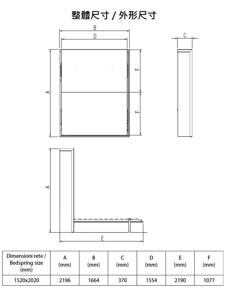 - 櫃體外徑呎吋: W1664*H2196*D370mm