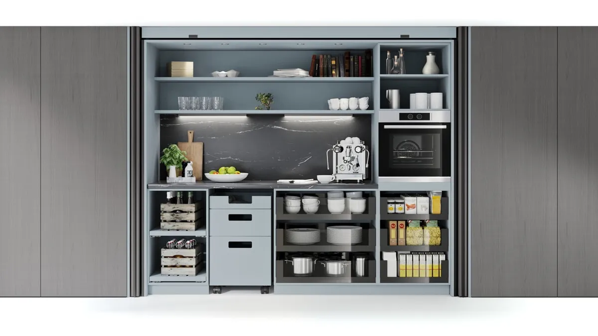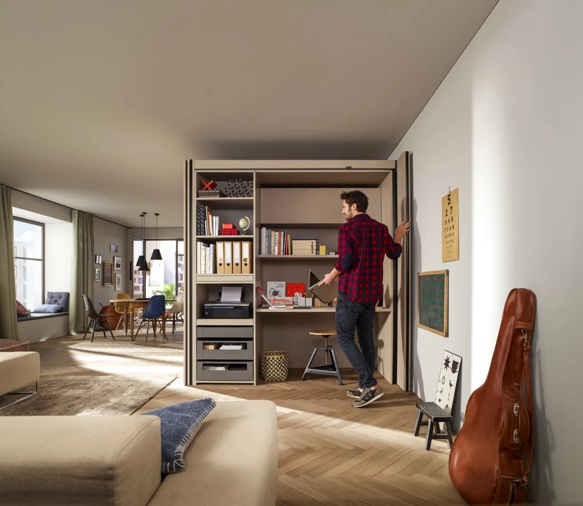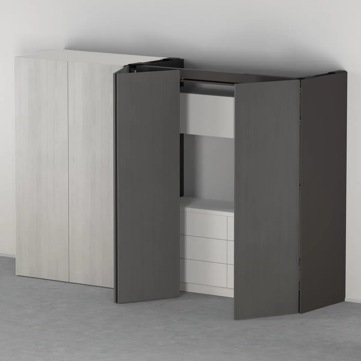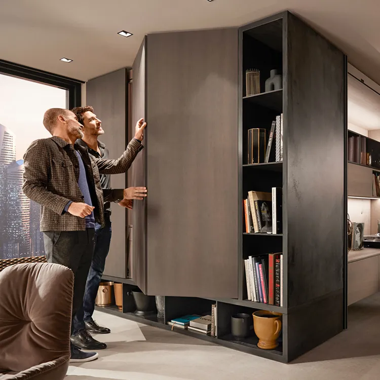 全新產品類型 - 魔力彈壓緩衝推入軌系列能創造出多功能生活空間。REVEGO - 獨樹一格具備高端內置技術,你能隨時按需要打開或隱藏整個生活空間。無論是單門還是雙門應用,全蓋面板都能收納於專用的窄櫃中。