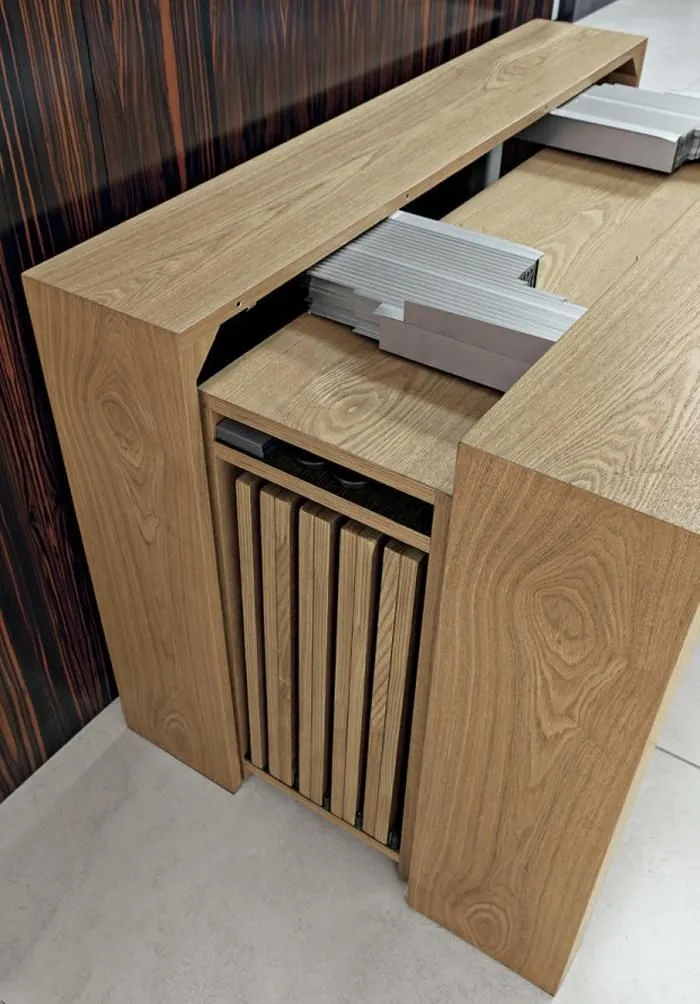 搭配中框支撐腳載重60kg,另外也可搭配設計隱藏於櫥櫃系統內,更多的設計構發想源自特別的五金。