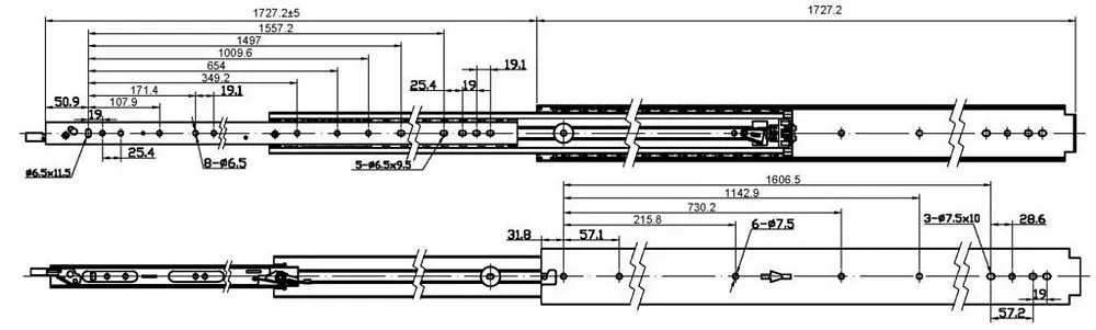 材質:冷軋鋼板超荷重型鋼珠滑軌,行程平穩順暢工業級單邊Lock-in + Lock-out高剛性板厚2.4mm,180公斤荷重雙折中框設計,耐重力與滑順度優異鎖頭把手抽屜全展鎖固與全閉合鎖固滑軌尺寸: 400.450.500.550.600.700.800.900.1000.1100.1200.1500.1600.1700mm皆可選擇