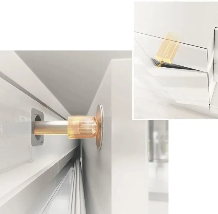 3. 自動關閉功能: 若廚電門在開啓時沒有及時打開,推桿會將面板重新拉回閉合。這樣可使門不會永遠保持在敞開狀態。