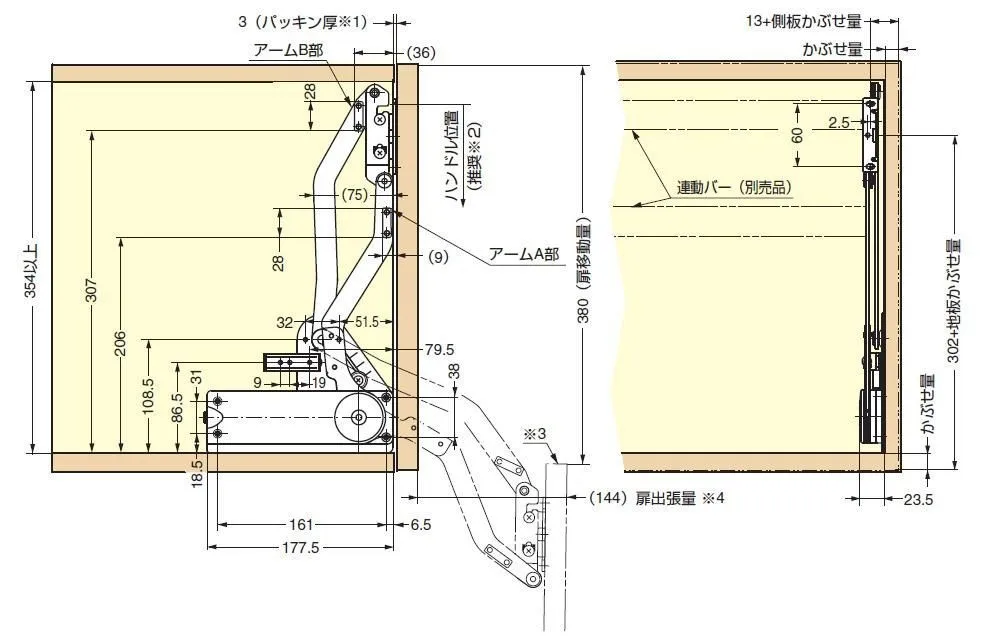 特色說明: 帶有升降輔助和緩衝開關功能的撐桿。 由於軌道安裝在櫃體底板上,因此在高度方向上的死角空間比傳統支柱少,而不會干擾到櫥櫃下方設計的安裝。 產品規格: 使用溫度:5℃~35℃ 門開最大限度:242mm 在玻璃門上安裝時,請確保玻璃框的寬度為45mm以上 若要在門片上安裝把手(另售),請確保其安裝於門片中央 此產品包含五金左右各1 個,有3種規格可選擇