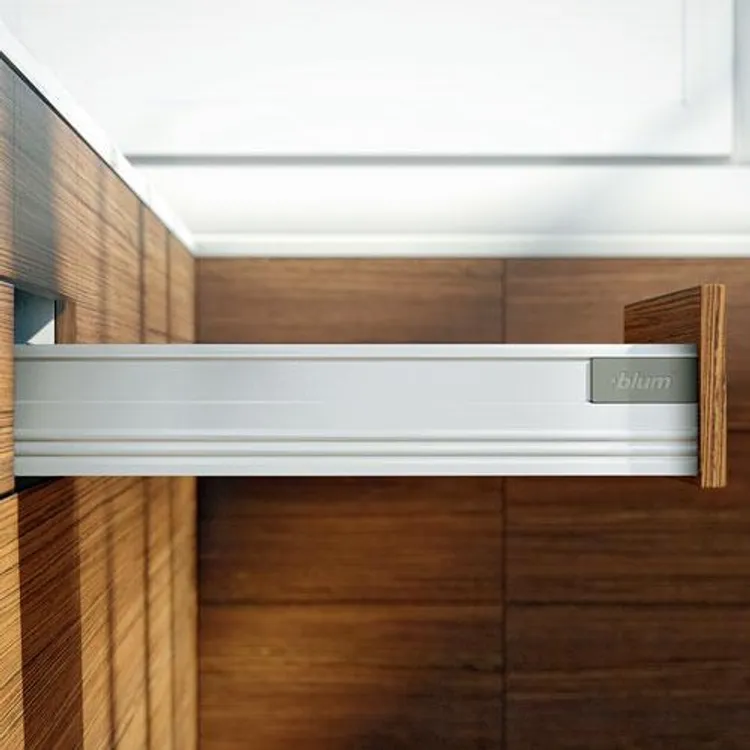 blum 全開式標準型緩衝金屬鋁灰抽,拉開時,輕柔滑順,抽屜關閉時,安靜緩衝無噪音,全是因 TANDEMBOX 豪華金屬抽屜滑軌。經過數百萬次的實踐證明,TANDEMBOX豪華金屬鋁灰抽滑軌,平穩順暢滑行的性能讓廣大客戶為之驚豔。BLUMOTION 緩衝阻尼則打造出輕柔關閉效果。完善的產品線(低抽、中抽、高高抽)和多功能內裝分隔配件,讓您能在面對客戶多樣化需求時,輕鬆找到合適的解決方案以及應用設計。