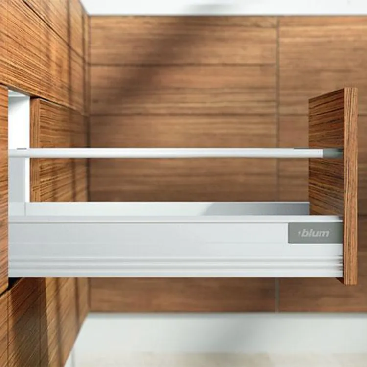 blum 的 TANDEMBOX 豪華金屬鋁灰抽滑軌,經過數百萬次的實踐證明,平穩順暢滑行的性能讓廣大客戶為之驚豔。BLUMOTION 緩衝阻尼則打造出輕柔關閉效果。完善的產品線(低抽、中抽、高高抽)和多功能內裝分隔配件,讓您能在面對客戶多樣化需求時,輕鬆找到合適的解決方案以及應用設計。
