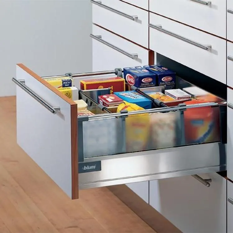 blum 的 TANDEMBOX 豪華金屬鋁灰抽滑軌,經過數百萬次的實踐證明,平穩順暢滑行的性能讓廣大客戶為之驚豔。BLUMOTION 緩衝阻尼則打造出輕柔關閉效果。完善的產品線(低抽、中抽、高高抽)和多功能內裝分隔配件,讓您能在面對客戶多樣化需求時,輕鬆找到合適的解決方案以及應用設計。