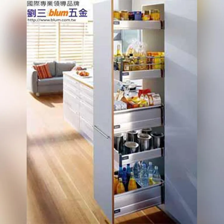 取代網籃的高身拉櫃,可以將大小不一南北雜貨收納起來,具有強大的收納空間。例如:備用的乾料及罐頭品能有足夠的空間來擺放,不用硬塞於冰箱裏。又沒有網籃的鐵條間隙,物品不易從中掉落卡住,清潔方便。