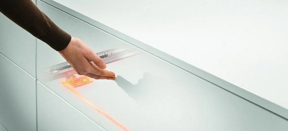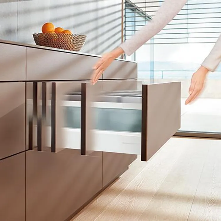 無把手傢具在未來的設計中,扮演越來越重要的角色。blum 最新的拍拍按壓緩衝抽滑軌,結合了方便開啓的TIP-ON 按壓功能及可靠的BLUMOTION靜音緩衝效果,不僅兼具設計及實用性,更為無把手傢俱創造了一個合諧及良好的使用經驗。此產品為100%機械開啓裝置搭配關閉緩衝效果,特別適用於無把手家具,不論是設計於廚具、浴櫃、客廳,皆能為您創造極簡的高品質傢具風格。