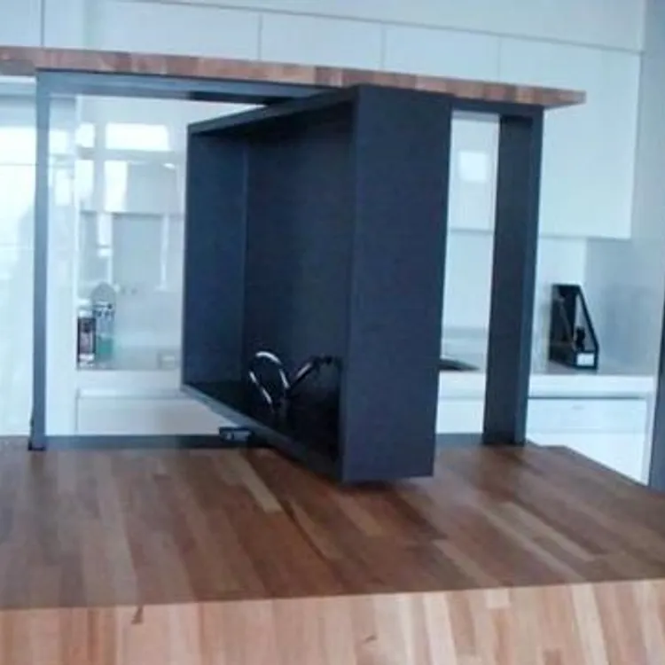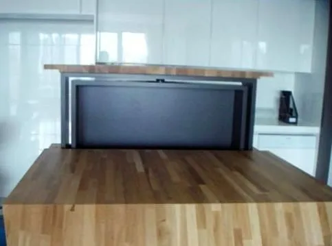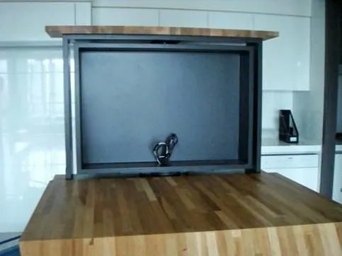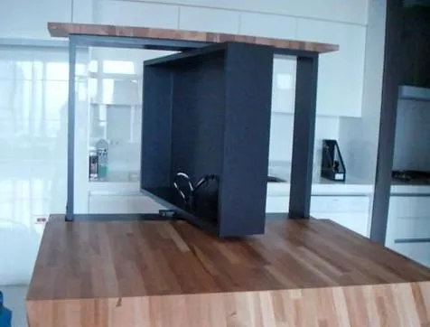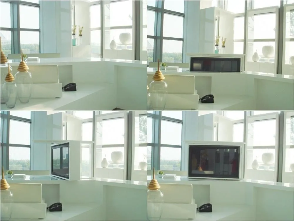 一台電視,兩個空間使用,省了電視主牆,不會遮擋視野,靈活運用您的居家空間。 可以旋轉360度的電視牆,不僅滿足客廳或餐廳的看電視需求,亦能針對使用者坐在沙發上或餐椅上時,對視角舒適度的不同需求,而彈性地升降電視高度。