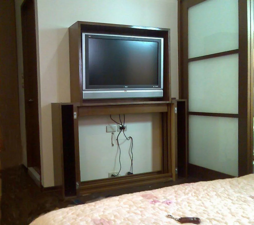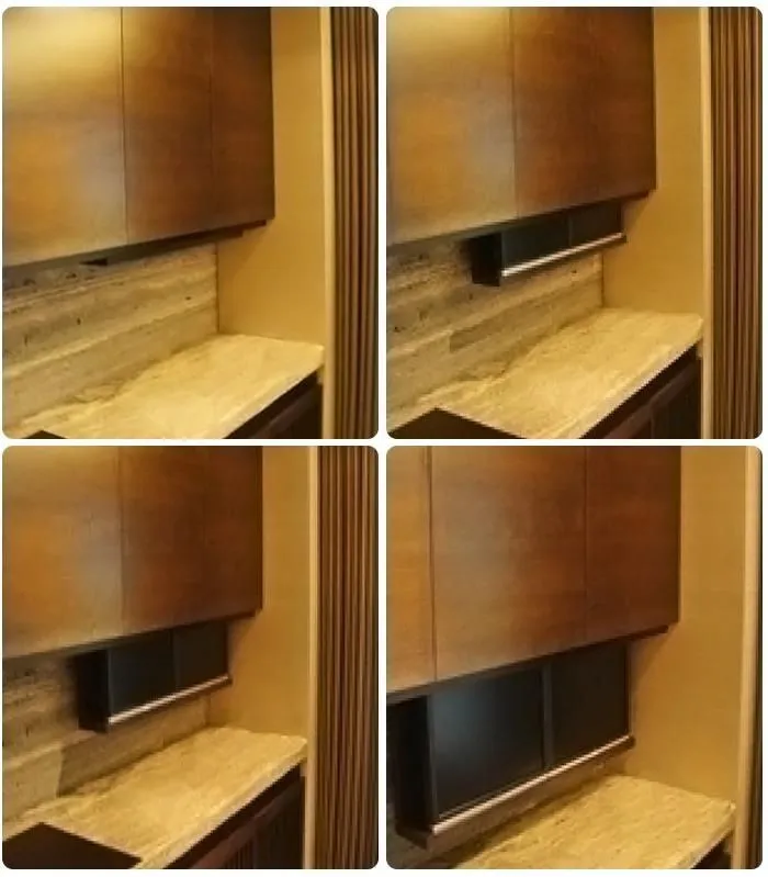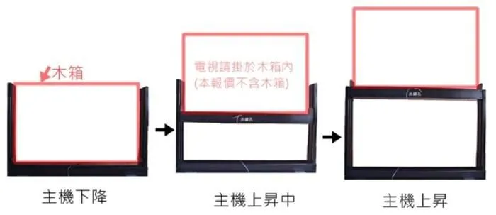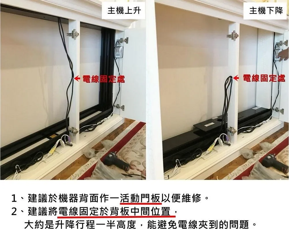 尺寸完全客製化,DVD光碟機,音響,伴唱機皆可同時收納。只要輕輕一按,即可欣賞電視節目,不需要時,即能隱藏於櫃體裝潢裡產品規格: