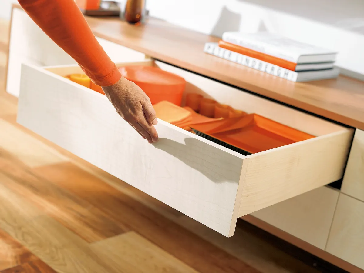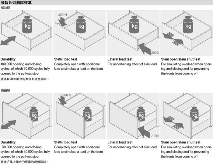 | blum 拍拍抽滑軌: 將 TIP-ON機械觸碰式開啓應用在 TANDEM 隱藏靜音木抽系列,可以豪不費力並且穩當地打開抽屜。輕觸面板的任意位置都可以,安裝大抽屜平衡桿,即使是寬面板,TIP-ON 機械觸碰式開啓的效果也能發揮出來。關閉櫃門只需輕按面板。做動行程短,彈力超強,高穩定性,低故障率,裝潢可做無把手整體造型設計,美觀實用。 產品優點: 1.標準長度: 27、30、35、40、45、50、55、60、65、70、75公分 。 2. 分為3/4開及全開式滑軌。 3. 通過10萬次以上之重覆開關測試,耐用度遠勝於國內外其他品牌滑軌。 4. 載重: 30KG/50KG。 5. 輕壓門板即可開啓。 6. 滑軌隱藏,提高質感。 7. 使用容易,品質好,故障率低。 8. 安裝容易不需工具,也可調整門片的間隙。 安裝說明: (產品品質通過多項國際認證檢驗) 大抽屜專用平衡桿