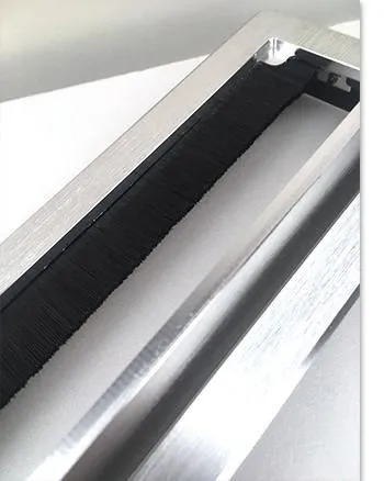 產品說明:適用於辦公室、電腦桌、書桌,毛刷可以有效固定電源線盒或其他數據機線。外形精緻,時尚美觀,使用靈活,安裝方便。顏色 : 鋁刷線、黑色產品尺寸 : 長200 x 寬90 x 高28 mm 開孔尺寸 : 長187 x 寬76 mm特色 : 關閉時具有緩衝效果