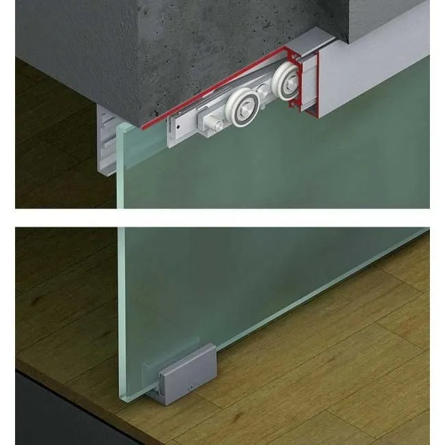 歐洲進口全玻璃拉門軌道五金,懸掛設計,門片載重高達80kg。適用於全玻璃推拉門片。此產品五金零件整合於上軌道裡面,所以軌道能做隱蔽式懸掛設計。產品可安裝於牆壁、天花板、或整合於天花板中,安裝施工便利簡單且具有出色的滑動性能。適用於以玻璃做為空間分隔和設計元素,如:飯店、餐廳、住宅、辦公室使用,能達到玻璃門片最大化的設計效果。另可搭配緩衝配件。