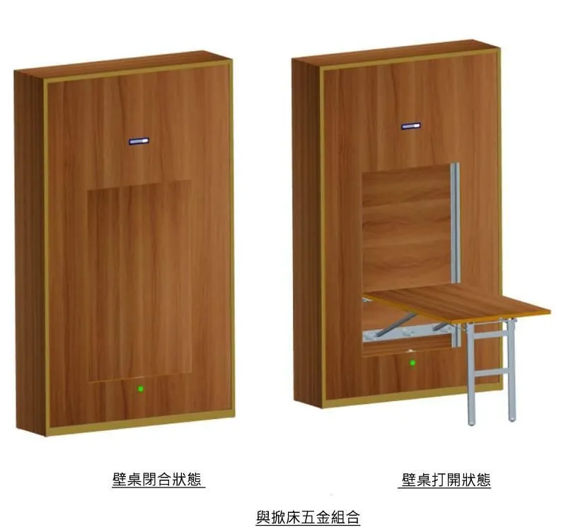 此款緩衝下掀壁桌五金適合廚房、客廳等等。節省空間、操作方便。